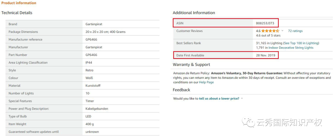 一个常见的例子是亚马逊销售链接,大部分亚马逊销售链接都有唯一的产品编码ASIN码及首次公开日Date First Available,EUIPO采纳该形式的证据。